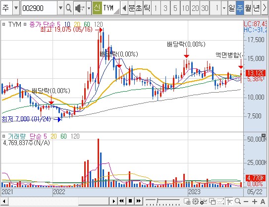 원래는 동양물산이라는 이름으로 상장 되어있다가 21년도에 TYM으로 사명을 변경하게 된 종목 입니다.